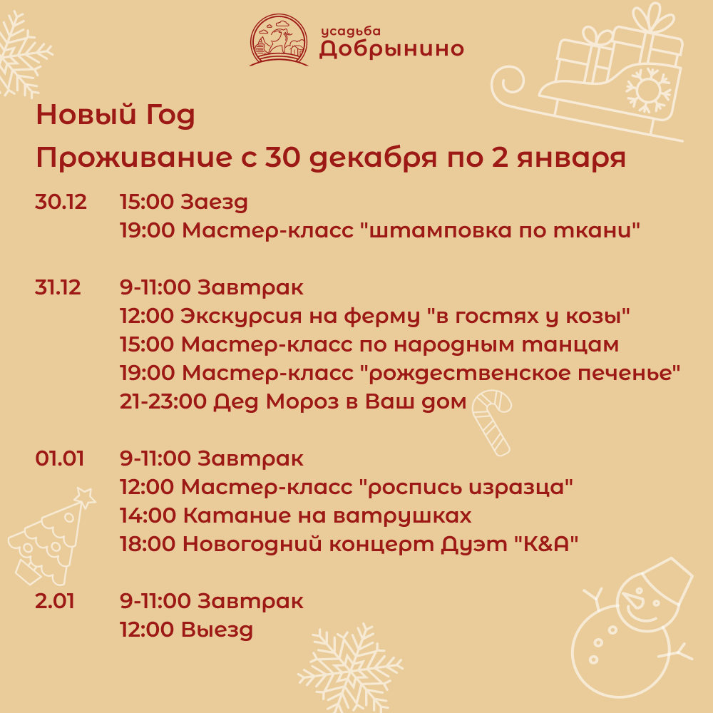 Новый год в Усадьбе Добрынино с 31.12.2024 по 02.01.2025